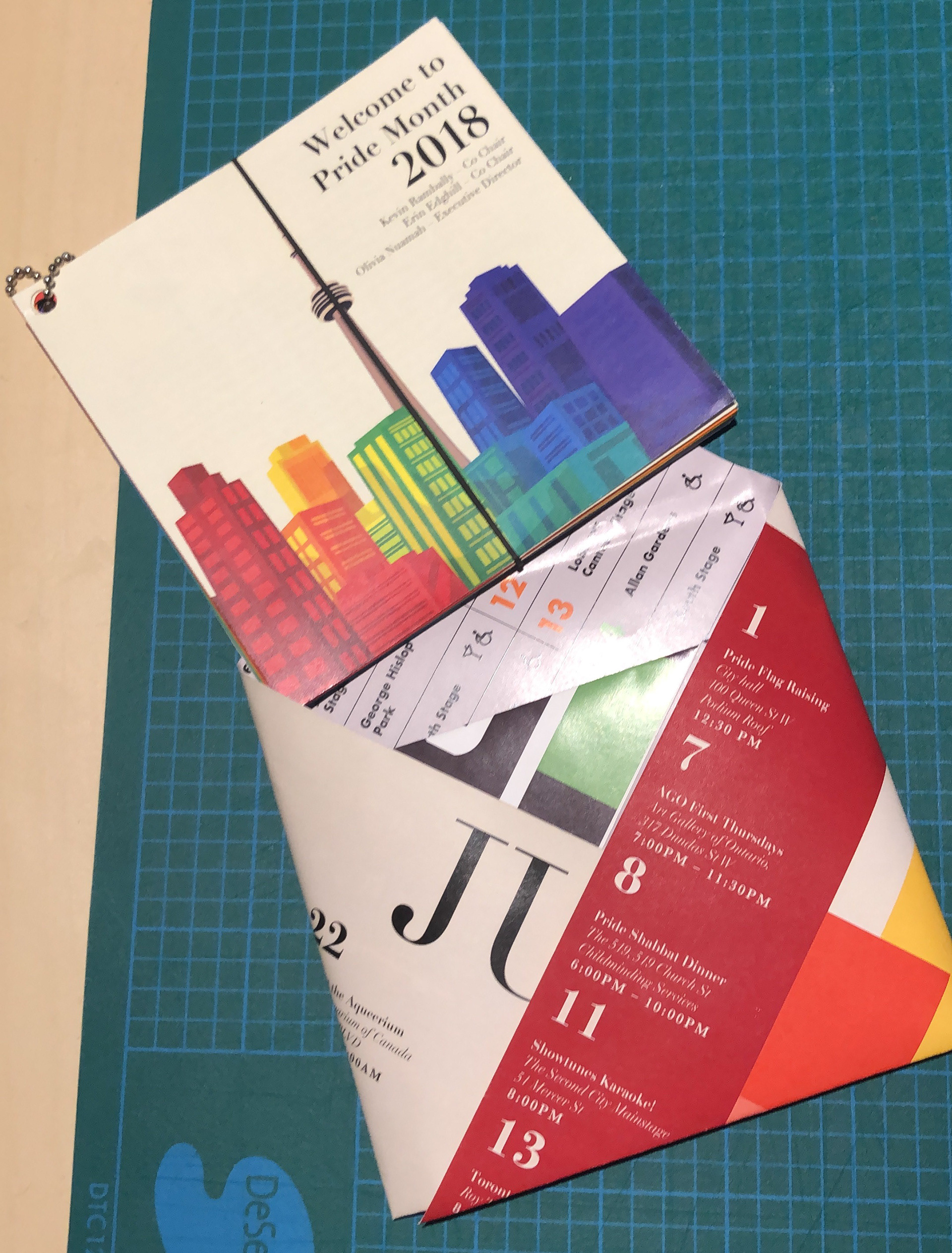 I wanted the map/calendar and guidebook to be handed din as a package at the start of the event. Therefore, I designed a foldable map/calendar that would serve as an envelope for the guidebook. I made sure the layout work for both the folded and unfolded format.