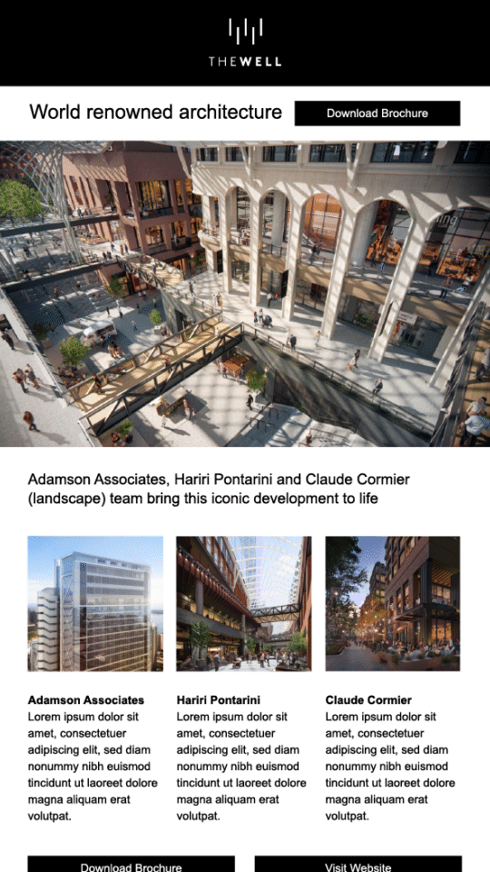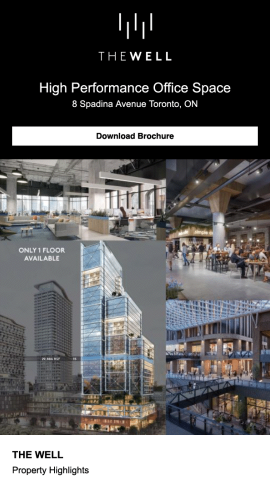 I created a cohesive marketing rollout with brochures, a targeted email campaign, and social content that brought The Well to life early and positioned it as a future-forward place to work.